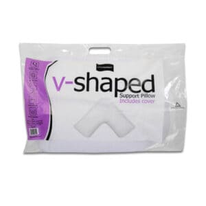 - Measuring 38cm x 76cm x 38cm x 76cm (15″ x 30″ x 15″ x 30″) the V Shaped Pillow is large enough to support your entire body